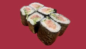 End frame: a beautifully crafted negitoro hosomaki sushi roll,